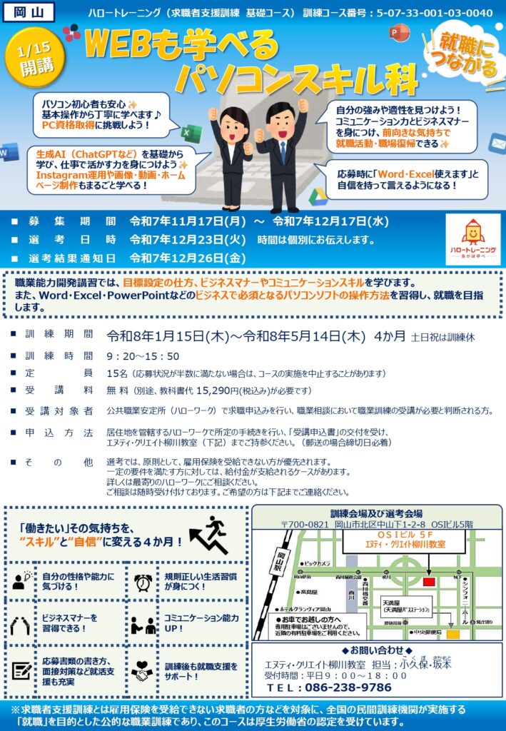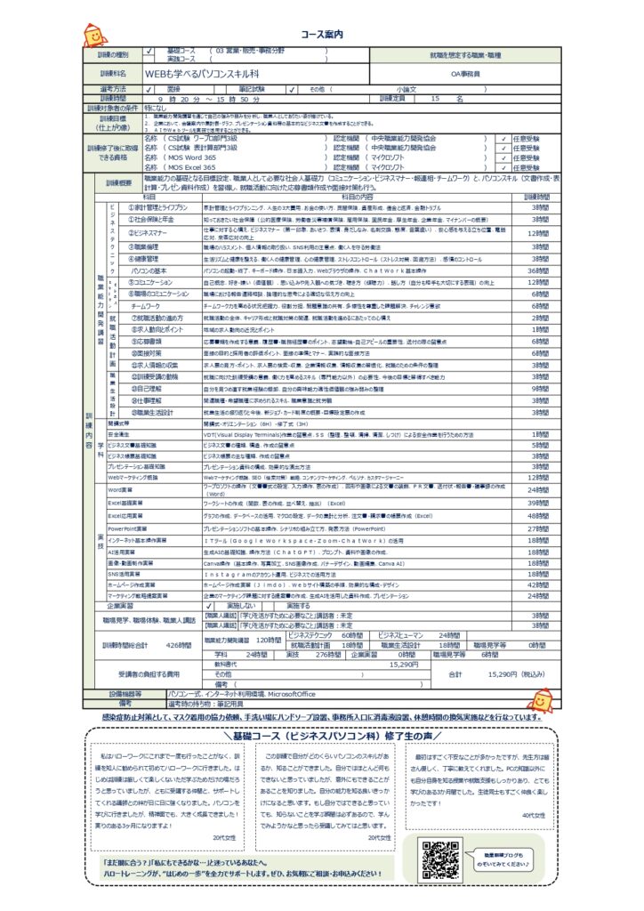 そんなあなたにぴったりの職業訓練「WEBも学べるパソコンスキル科」の受講生を募集中です!